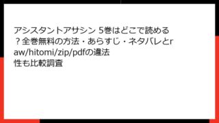 アシスタントアサシン アシスタントアサシン 5巻はどこで読める?全巻無料の方法・あらすじ・ネタバレとraw/hitomi/zip/pdfの違法性も比較調査 アシスタントアサシン 5巻のあらすじ奥嶋ひろまさによるアクション満載の漫画『アシスタントアサシン』の5巻は、シリーズの後半に位置づけられ、主人公の二重生活がさらに激化する展開を描いています。この巻では、前巻までの激しい戦いの余波と新たな試練... 2026.01.30 アシスタントアサシン青年マンガ・コミック