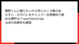 青野くんに触りたいから死にたい 1巻:純愛とホラーの交錯する物語この記事では、椎名うみ先生の人気漫画『青野くんに触りたいから死にたい』の1巻に焦点を当て、詳細なあらすじを解説します。天然の女子高生と幽霊となった彼氏の関係を描いた、切なくもコ...