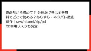 BLマンガ・コミック 運命だから諦めて? 分冊版 7巻は全巻無料でどこで読める?あらすじ・ネタバレ徹底紹介|raw/hitomi/zip/pdfの利用リスクも調査 運命だから諦めて? 分冊版 7巻のあらすじ詳解この記事では、人気BLコミック「運命だから諦めて?」の分冊版7巻に焦点を当てて、詳しいあらすじをお届けします。シリーズ全体の魅力も交えつつ、7巻の出来事を深掘りしていきます。暴走しがちな主人公と... 2026.02.02 BLマンガ・コミック運命だから諦めて? 分冊版
