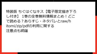 BLマンガ・コミック 特装版 ちぐはぐなキス【電子限定描き下ろし付き】 1巻の全巻無料情報まとめ!どこで読める?あらすじ・ネタバレとraw/hitomi/zip/pdfの利用に関する注意点も網羅 特装版 ちぐはぐなキス【電子限定描き下ろし付き】 1巻のあらすじ詳解作品概要「特装版 ちぐはぐなキス【電子限定描き下ろし付き】」は、作者末広マチによる青春ラブストーリーを描いたコミックで、ドットブルームコミックスDIGITALレーベルから発... 2026.02.04 BLマンガ・コミック特装版 ちぐはぐなキス【電子限定描き下ろし付き】
