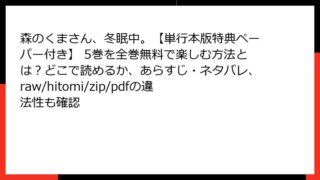 BLマンガ・コミック 森のくまさん、冬眠中。【単行本版特典ペーパー付き】 5巻を全巻無料で楽しむ方法とは?どこで読めるか、あらすじ・ネタバレ、raw/hitomi/zip/pdfの違法性も確認 森のくまさん、冬眠中。5巻のあらすじ詳解人気のBLコミックシリーズ「森のくまさん、冬眠中。」の5巻は、クマのノワと犬のアイリのラブラブな関係がさらに深まる感動とエロスの詰まった一冊です。この巻では、冬眠中の夢から始まるファンタジー要素と、現... 2026.02.05 BLマンガ・コミック森のくまさん、冬眠中。【単行本版特典ペーパー付き】