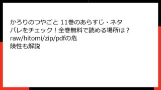 かろりのつやごと かろりのつやごと 11巻のあらすじ・ネタバレをチェック!全巻無料で読める場所は?raw/hitomi/zip/pdfの危険性も解説 かろりのつやごと 11巻 あらすじ詳解小田ゆうあ先生の人気漫画「かろりのつやごと」の11巻は、主人公のかろりが恋する青井くんとの関係がさらに深まる一方で、新たな葛藤や周囲の人間模様が描かれます。食べることが大好きで、恋愛に臆病だったかろりが... 2026.02.06 かろりのつやごと女性マンガ・コミック