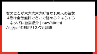 君のことが大大大大大好きな100人の彼女 君のことが大大大大大好きな100人の彼女 4巻は全巻無料でどこで読める?あらすじ・ネタバレ徹底紹介|raw/hitomi/zip/pdfの利用リスクも調査 君のことが大大大大大好きな100人の彼女 4巻 あらすじこの巻では、主人公の愛城恋太郎がさらに新しい彼女たちを迎え入れ、家族が拡大していく様子が描かれます。ラブコメの要素がさらに加速し、ドタバタとした日常や奇抜なイベントが満載です。羽々里さ... 2026.02.06 君のことが大大大大大好きな100人の彼女青年マンガ・コミック