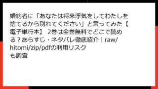 女性マンガ・コミック 婚約者に「あなたは将来浮気をしてわたしを捨てるから別れてください」と言ってみた【電子単行本】 2巻は全巻無料でどこで読める?あらすじ・ネタバレ徹底紹介|raw/hitomi/zip/pdfの利用リスクも調査