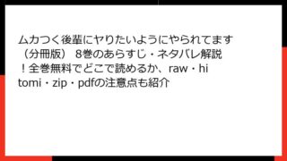 ムカつく後輩にヤりたいようにやられてます(分冊版) ムカつく後輩にヤりたいようにやられてます(分冊版) 8巻のあらすじ・ネタバレ解説!全巻無料でどこで読めるか、raw・hitomi・zip・pdfの注意点も紹介 ムカつく後輩にヤりたいようにやられてます(分冊版) 8巻のあらすじ物語の全体像とこれまでの展開この漫画は、バツイチのアラサー女性が、職場で出会うムカつく後輩との不器用な恋愛を描いたラブストーリーです。主人公の七井瀬奈は、夫の不倫が原因で離婚... 2026.02.07 ムカつく後輩にヤりたいようにやられてます(分冊版)女性マンガ・コミック
