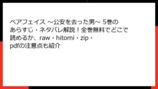 ベアフェイス ~公安を去った男~ ベアフェイス ~公安を去った男~ 5巻のあらすじ・ネタバレ解説!全巻無料でどこで読めるか、raw・hitomi・zip・pdfの注意点も紹介 ベアフェイス ~公安を去った男~ 5巻のあらすじこの記事では、狛犬はやと氏による人気漫画「ベアフェイス ~公安を去った男~」の第5巻について、詳細なあらすじを紹介します。公安を去った元エリート捜査官が探偵として活躍するストーリーが、さらに深... 2026.02.08 ベアフェイス ~公安を去った男~青年マンガ・コミック