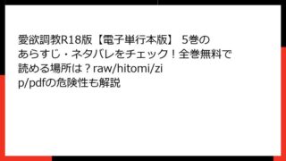 BLマンガ・コミック 愛欲調教R18版【電子単行本版】 5巻のあらすじ・ネタバレをチェック!全巻無料で読める場所は?raw/hitomi/zip/pdfの危険性も解説 愛欲調教R18版【電子単行本版】 5巻の詳細なあらすじこの記事では、BLマンガ『愛欲調教R18版【電子単行本版】』の5巻について、ネタバレを含む詳細なあらすじを解説します。シリーズのファンや興味のある読者向けに、ストーリーの深みを掘り下げて... 2026.02.08 BLマンガ・コミック愛欲調教R18版【電子単行本版】