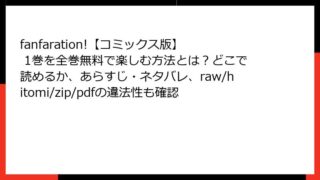 BLマンガ・コミック fanfaration!【コミックス版】 1巻を全巻無料で楽しむ方法とは?どこで読めるか、あらすじ・ネタバレ、raw/hitomi/zip/pdfの違法性も確認 fanfaration!【コミックス版】1巻のあらすじ詳解この記事では、話題のBLコミックス「fanfaration!【コミックス版】」の1巻について、詳しいあらすじを掘り下げて紹介します。オメガバースの世界観を基調とした物語で、アイドルと... 2026.02.09 BLマンガ・コミックfanfaration!【コミックス版】