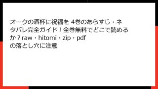 オークの酒杯に祝福を オークの酒杯に祝福を 4巻のあらすじ・ネタバレ完全ガイド!全巻無料でどこで読めるか?raw・hitomi・zip・pdfの落とし穴に注意 オークの酒杯に祝福を 4巻 あらすじこの記事では、ファンタジー漫画「オークの酒杯に祝福を」の第4巻について、詳細なあらすじを紹介します。酒が魔力の源となる独特な異世界を舞台に、ハーフオークの主人公エルピスと貴族の令嬢マルギットが繰り広げる冒... 2026.02.10 オークの酒杯に祝福を少年マンガ・コミック
