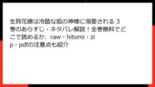 少女マンガ・コミック 生贄花嫁は冷酷な狐の神様に溺愛される 3巻のあらすじ・ネタバレ解説!全巻無料でどこで読めるか、raw・hitomi・zip・pdfの注意点も紹介 生贄花嫁は冷酷な狐の神様に溺愛される 3巻の詳細あらすじこの人気和風ファンタジーロマンス漫画の3巻では、主人公・琴子の運命がさらにドラマチックに展開します。家族からの虐待や生贄の役割から始まった物語が、神様からの溺愛へと移行し、過去のトラウ... 2026.02.10 少女マンガ・コミック生贄花嫁は冷酷な狐の神様に溺愛される