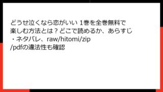 どうせ泣くなら恋がいい どうせ泣くなら恋がいい 1巻を全巻無料で楽しむ方法とは?どこで読めるか、あらすじ・ネタバレ、raw/hitomi/zip/pdfの違法性も確認