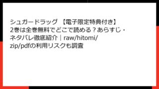 BLマンガ・コミック シュガードラッグ 【電子限定特典付き】 2巻は全巻無料でどこで読める?あらすじ・ネタバレ徹底紹介|raw/hitomi/zip/pdfの利用リスクも調査 シュガードラッグ 2巻の詳細なあらすじこの記事では、人気BL漫画「シュガードラッグ」の2巻について、ストーリーの詳細を深掘りします。特殊な研究機関を舞台にしたスリリングな人間関係と実験のドラマが展開され、読者を引き込む魅力がいっぱいです。1... 2026.02.14 BLマンガ・コミックシュガードラッグ 【電子限定特典付き】