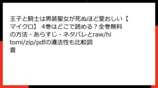 女性マンガ・コミック 王子と騎士は男装聖女が死ぬほど愛おしい【マイクロ】 4巻はどこで読める?全巻無料の方法・あらすじ・ネタバレとraw/hitomi/zip/pdfの違法性も比較調査 王子と騎士は男装聖女が死ぬほど愛おしい【マイクロ】 4巻のあらすじ詳解この人気の異世界ファンタジー漫画の4巻では、男装して生きる聖女レイフの運命がさらに複雑に絡み合います。軟派な王子と硬派な騎士の間で揺れる三角関係が深みを増し、王家の陰謀が... 2026.02.14 女性マンガ・コミック王子と騎士は男装聖女が死ぬほど愛おしい【マイクロ】