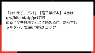 「おかえり、パパ」【電子単行本】 「おかえり、パパ」【電子単行本】 4巻はraw/hitomi/zip/pdfで読める?全巻無料でどこで読めるか、あらすじ&ネタバレも最新情報チェック 「おかえり、パパ」4巻のあらすじ詳解蝉丸によるホームサスペンス漫画「おかえり、パパ」の電子単行本4巻は、家族の秘密と心理的な葛藤がさらに深まる一冊です。この記事では、物語の流れを詳しく解説し、ネタバレを交えながら読み応えのある形でまとめてい... 2026.02.15 「おかえり、パパ」【電子単行本】青年マンガ・コミック