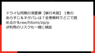 ドライな同期の溺愛癖【単行本版】 ドライな同期の溺愛癖【単行本版】 1巻のあらすじ&ネタバレは?全巻無料でどこで読めるか&raw/hitomi/zip/pdf利用のリスクも一緒に検証 ドライな同期の溺愛癖【単行本版】1巻 詳細あらすじ『ドライな同期の溺愛癖』は、特殊能力を持つ女性営業マンと、無表情で潔癖症の同期男性のオフィスラブを軸にした甘く刺激的なラブストーリーです。単行本版1巻では、物語の導入部から二人の運命的な出張... 2026.02.16 ドライな同期の溺愛癖【単行本版】少女マンガ・コミック