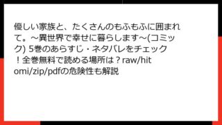 優しい家族と、たくさんのもふもふに囲まれて。~異世界で幸せに暮らします~(コミック) 優しい家族と、たくさんのもふもふに囲まれて。~異世界で幸せに暮らします~(コミック) 5巻のあらすじ・ネタバレをチェック!全巻無料で読める場所は?raw/hitomi/zip/pdfの危険性も解説