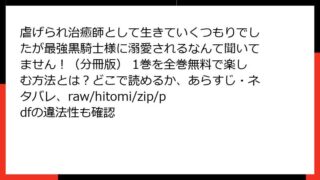 少女マンガ・コミック 虐げられ治癒師として生きていくつもりでしたが最強黒騎士様に溺愛されるなんて聞いてません!(分冊版) 1巻を全巻無料で楽しむ方法とは?どこで読めるか、あらすじ・ネタバレ、raw/hitomi/zip/pdfの違法性も確認