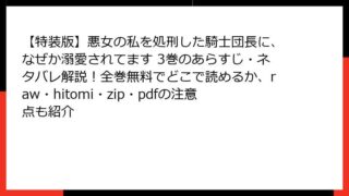 【特装版】悪女の私を処刑した騎士団長に、なぜか溺愛されてます 【特装版】悪女の私を処刑した騎士団長に、なぜか溺愛されてます 3巻のあらすじ・ネタバレ解説!全巻無料でどこで読めるか、raw・hitomi・zip・pdfの注意点も紹介