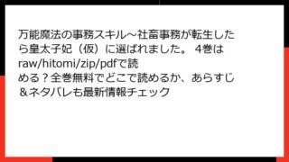 万能魔法の事務スキル~社畜事務が転生したら皇太子妃(仮)に選ばれました。 万能魔法の事務スキル~社畜事務が転生したら皇太子妃(仮)に選ばれました。 4巻はraw/hitomi/zip/pdfで読める?全巻無料でどこで読めるか、あらすじ&ネタバレも最新情報チェック