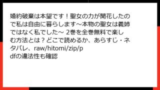 女性マンガ・コミック 婚約破棄は本望です!聖女の力が開花したので私は自由に暮らします~本物の聖女は義姉ではなく私でした~ 2巻を全巻無料で楽しむ方法とは?どこで読めるか、あらすじ・ネタバレ、raw/hitomi/zip/pdfの違法性も確認