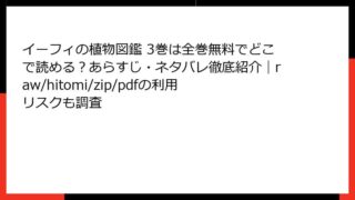 イーフィの植物図鑑 イーフィの植物図鑑 3巻は全巻無料でどこで読める?あらすじ・ネタバレ徹底紹介|raw/hitomi/zip/pdfの利用リスクも調査 イーフィの植物図鑑 3巻 あらすじ イーフィの植物図鑑 3巻の詳細なあらすじ:植物と人間の境界を巡る冒険 奈々巻かなこによるファンタジー漫画「イーフィの植物図鑑」の3巻は、シリーズのクライマックスに向かう重要な展開を見せます。17世紀の西ヨ... 2026.03.08 イーフィの植物図鑑女性マンガ・コミック