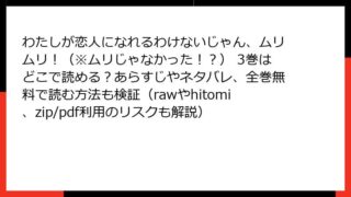 わたしが恋人になれるわけないじゃん、ムリムリ!(※ムリじゃなかった!?) わたしが恋人になれるわけないじゃん、ムリムリ!(※ムリじゃなかった!?) 3巻はどこで読める?あらすじやネタバレ、全巻無料で読む方法も検証(rawやhitomi、zip/pdf利用のリスクも解説)