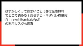 はずかしくってあまいこと はずかしくってあまいこと 3巻は全巻無料でどこで読める?あらすじ・ネタバレ徹底紹介|raw/hitomi/zip/pdfの利用リスクも調査 はずかしくってあまいこと 3巻のあらすじを詳しく解説人気の少女漫画「はずかしくってあまいこと」の3巻は、主人公カップルの関係がさらに深まる甘酸っぱいエピソードが満載です。この記事では、3巻のストーリーをネタバレ込みで詳しく振り返りながら、キ... 2026.03.11 はずかしくってあまいこと少女マンガ・コミック