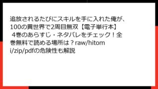 追放されるたびにスキルを手に入れた俺が、100の異世界で2周目無双【電子単行本】 追放されるたびにスキルを手に入れた俺が、100の異世界で2周目無双【電子単行本】 4巻のあらすじ・ネタバレをチェック!全巻無料で読める場所は?raw/hitomi/zip/pdfの危険性も解説