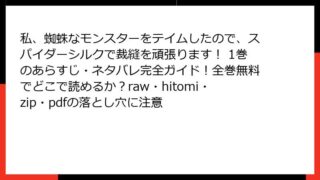 少年マンガ・コミック 私、蜘蛛なモンスターをテイムしたので、スパイダーシルクで裁縫を頑張ります! 1巻のあらすじ・ネタバレ完全ガイド!全巻無料でどこで読めるか?raw・hitomi・zip・pdfの落とし穴に注意 『私、蜘蛛なモンスターをテイムしたので、スパイダーシルクで裁縫を頑張ります!』1巻 詳細あらすじ異世界転生×チート裁縫スキル×可愛い蜘蛛相棒のほのぼのクラフトファンタジー! このコミック1巻は、病で亡くなった少女が新しい人生を全力で楽しむ姿... 2026.03.22 少年マンガ・コミック私、蜘蛛なモンスターをテイムしたので、スパイダーシルクで裁縫を頑張ります!
