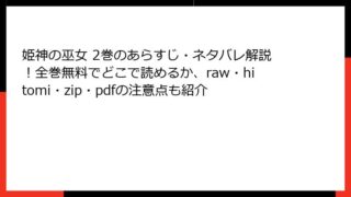 姫神の巫女 姫神の巫女 2巻のあらすじ・ネタバレ解説!全巻無料でどこで読めるか、raw・hitomi・zip・pdfの注意点も紹介 『姫神の巫女』2巻 詳細あらすじ - 運命に抗う二人の巫女、濃厚な絆と儀式の決着伝説的な百合作品『神無月の巫女』のスピンオフとして話題の『姫神の巫女』。その第2巻では、主人公の千華音と媛子の関係がさらに深みを増し、運命の「御霊鎮めの儀」を軸... 2026.03.30 姫神の巫女少年マンガ・コミック