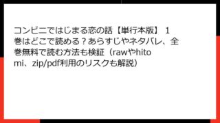 コンビニではじまる恋の話【単行本版】 コンビニではじまる恋の話【単行本版】 1巻はどこで読める?あらすじやネタバレ、全巻無料で読む方法も検証(rawやhitomi、zip/pdf利用のリスクも解説) コンビニではじまる恋の話【単行本版】1巻 あらすじを徹底解説! ほんわか癒し系歳の差ラブコメの魅力に迫るコンビニの夜のカウンターで繰り広げられる、静かで甘い恋の物語。みずぐちまふゆ先生の人気作『コンビニではじまる恋の話【単行本版】』1巻は、... 2026.03.30 コンビニではじまる恋の話【単行本版】少女マンガ・コミック