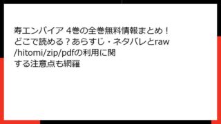 寿エンパイア 寿エンパイア 4巻の全巻無料情報まとめ!どこで読める?あらすじ・ネタバレとraw/hitomi/zip/pdfの利用に関する注意点も網羅 寿エンパイア 4巻 詳細あらすじ:若獅子杯決勝戦の熱きドラマと因縁の対決巻全体の概要と物語の位置づけ『寿エンパイア』4巻は、若手寿司職人たちの頂点を決める大会「若獅子杯」のクライマックスを完全に描いた一冊です。主人公・松田湧吾(まつだゆうご... 2026.03.31 寿エンパイア少年マンガ・コミック